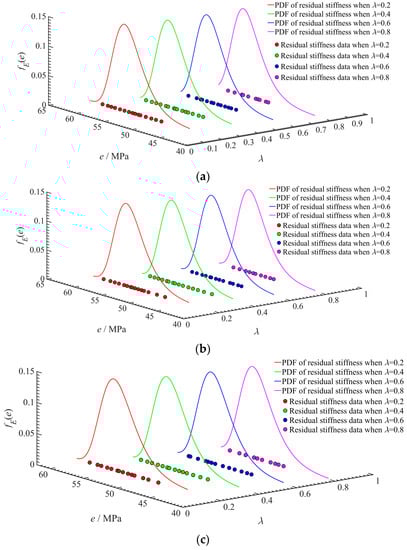 Moreover, the PDF of residual stiffness is obtained by a derivation of Equation (12).