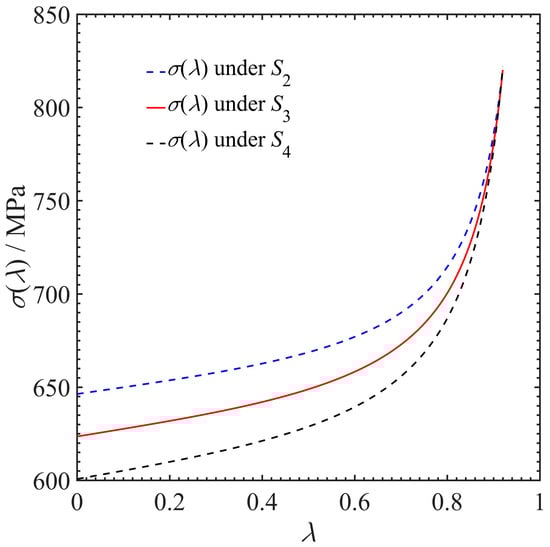 Equation (18) illustrates the correlation between effective stress  and fatigue damage . Note from Equation (18) that the effective stress grows with the increase in fatigue damage, which is consistent with the conclusion in Figure 9.