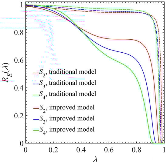 Figure 13 shows that the strength-based failure rate curve of the Gr/PEEK [0/45/90/−45]2S laminates exhibits two distinctly different periods. For a given cycle ratio, the failure rate calculated by the improved model is higher than that calculated by the traditional model. This is because the improved model considers both effective stress growth and strength degradation, while the traditional model only considers the latter.