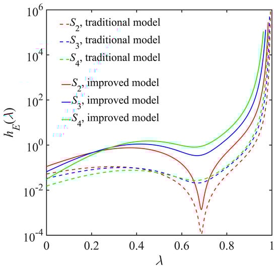 Note from Figure 17 that the stiffness-based failure rate curve of the Gr/PEEK [0/45/90/−45]2S laminates is similar to but different than the bathtub shape. For a specific cycle ratio, the failure rate calculated by the improved model is higher than that calculated by the traditional model. This is because the improved model considers both critical stiffness growth and stiffness degradation, while the traditional model only considers the latter.
