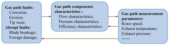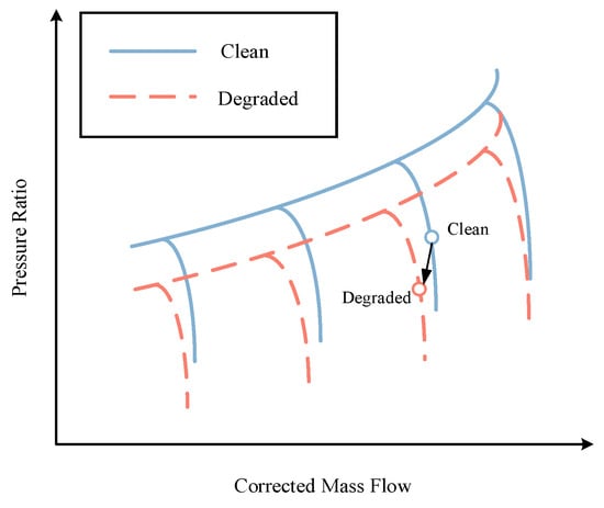 6]. During the engine’s prolonged operation, the component performance gradually deteriorates, leading to faults such as corrosion, erosion, fouling, and increased blade tip clearances. Abrupt mutation faults mainly include damage from internal and external objects, such as hail or bird strikes. These faults can cause a rapid decline in the component performance within a short period and may even lead to in-flight shutdowns [