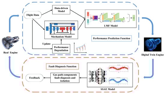 34] developed an adaptive correction method for turbofan engines based on an LSTM neural network and the hybrid optimization method. However, most of these studies focus on the fusion of data-driven models without fully leveraging the complementary advantages of mechanism models and data-driven models. Currently, there is a lack of sufficient research on how to effectively utilize digital twin technology to integrate mechanism models and data-driven models [