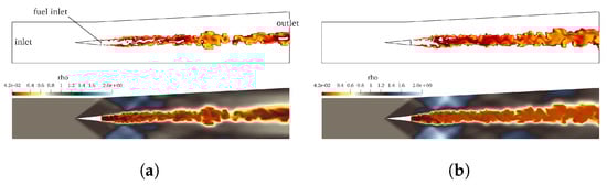 - Potturi, A.; Edwards, J. Investigation of Subgrid Closure Models for Finite-Rate Scramjet Combustion. In Proceedings of the 43rd Fluid Dynamics Conference, San Diego, CA, USA, 24–27 June 2013; pp. 1–10. [Google Scholar] [CrossRef]