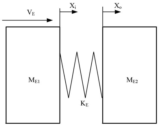 Equivalent theoretical model of two spacecraft docking collision dynamics.