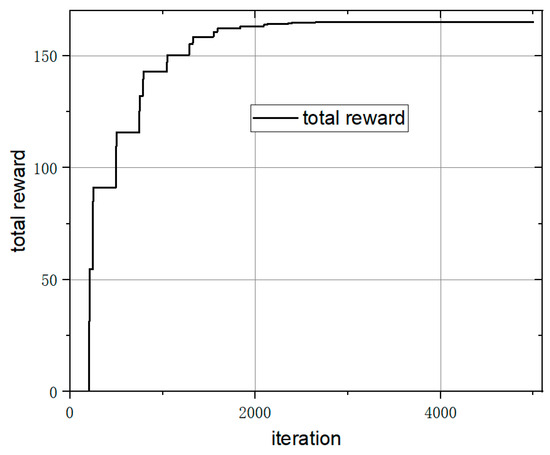 In this paper, α = 0.01, ε = 0.1, and γ = 0.99 are set based on engineering experience. After 50,000 studies, the total reward is shown in Figure 15.