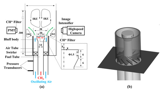 - Wang, G.; Liu, X.; Xia, X.; Wang, S.; Qi, F. Dynamics of periodically-excited vortices in swirling flames. Proc. Combust. Inst. 2021, 38, 6183–6191. [Google Scholar] [CrossRef]