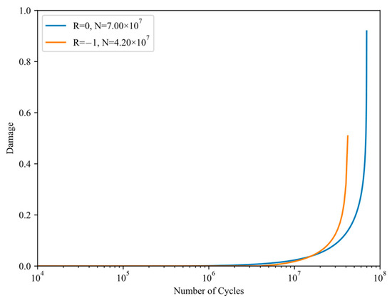 5.2. Influence of Stress Ratio and Stress Level on the Damage Accumulation and Evolution Rate