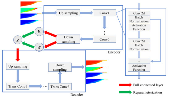 The VAE was originally proposed by Kingma et al. [28]. In this paper, the VAE model is built with reference to the method in [17], i.e., the residual blocks are used to build the encoder and decoder to increase the depth of the neural network and, thus, enhance the feature extraction capability of the VAE.