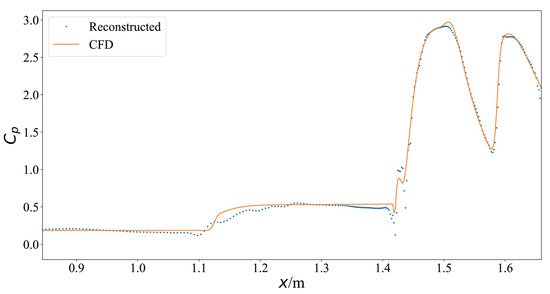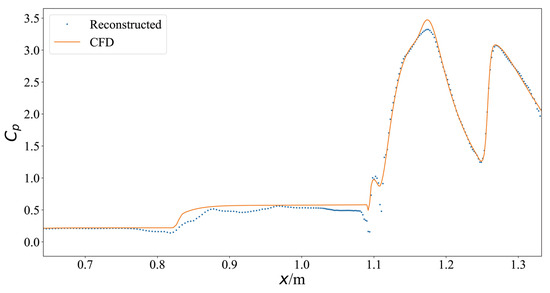 Figure 18 and Figure 19 show the pressure coefficient profile on the compression surface of the typical flow field in the training and testing sets, respectively. The wall pressure is basically well-captured by the VAE reconstruction method. The error is relatively high near the throat, but we are more concerned about the results near the exit of the inlets.