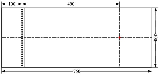 Due to the constraints imposed by the current model length, a row of cylindrical tripping devices was placed 100 mm from the leading edge. The primary objective of this arrangement was to expedite the transition process and establish a fully developed turbulent boundary layer at the designated measurement location. The three-dimensional cylindrical tripping device employed in this study is visually depicted in Figure 3. The dimensions of these tripping elements and their spatial arrangement were meticulously informed by experimental findings documented in Ref. [27]. Specifically, the tripping devices consist of a linear array of cylinders, each possessing a diameter of 3 mm and a height of 5 mm. These cylinders are uniformly spaced at 9 mm intervals along the spanwise direction.