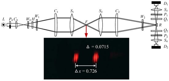 Schematic of the 2P-CFLDI system and bifocal pair characterization (unit: mm).