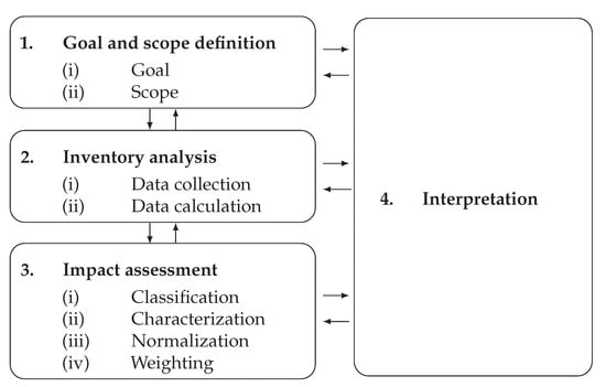 Phases of an environmental life cycle assessment, ref. [13], adapted from [3].