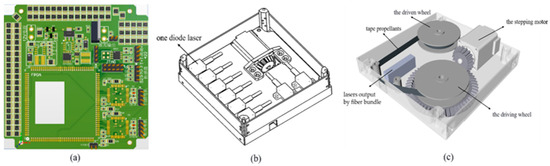 Details of the thruster: (a) power processing unit and controller, (b) diode laser configuration, and (c) propellant feed system.