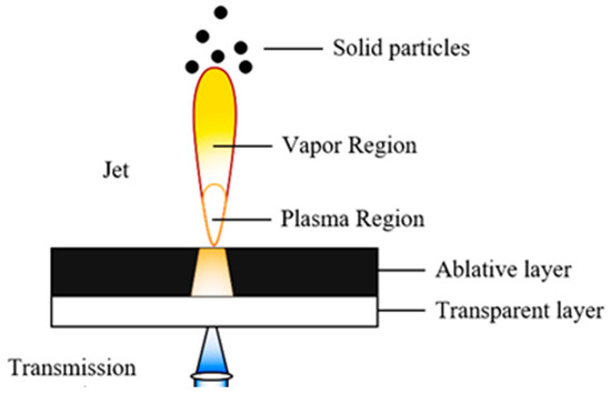 Micro- and nano-satellites require precise, controllable, and continuous thrust output in order to achieve orbit change [4], attitude control [5], and rapid maneuvering [6]. Laser micro-thrust technology is an important type of propulsion technology. The principle of laser micro-thrust technology is that a laser beam from the thruster ablates the propellant, and the ablated material is ejected to generate propulsion. Laser micro-thrust technology has high specific impulses, high control precision, and low power consumption [7,8,9,10] and has, thus, attracted extensive attention.
