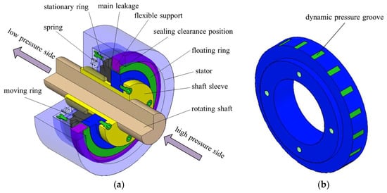 Schematic diagram of flexible support CGFS. (a) Schematic diagram of sealing assembly; (b) schematic diagram of moving ring.
