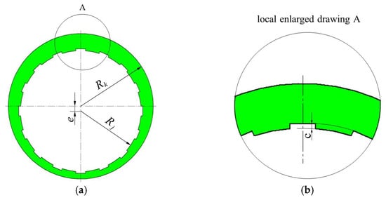 Eccentricity e is the distance between the centerline of the moving ring and the centerline of the floating ring, eccentricity rate ε is a parameter that represents the degree of eccentricity, which can be calculated with Equation (3),