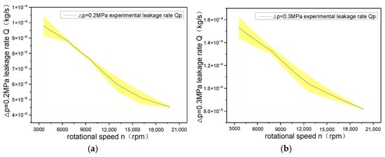 Comparative analysis of leakage rate. (a) Δp = 0.2 MPa; (b) Δp = 0.3 MPa.