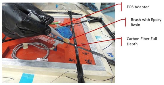 Sensing systems based on optical fibers are considered for the structural health monitoring of composite aircraft applications due to many advantages over conventional counterparts, including: insensitivity to electromagnetic interference, lightweight and flexible harness, low power requirements per sensor, high signal-to-noise ratio, remote interrogation and finally the potential to be embedded in composite structures. An overview of such applications can be found in [6]. A few examples of the adoption of such systems in conjunction with specific composite grid structures are addressed in [7,8]. Embedded optical fibers sensors can also be efficiently applied for process monitoring, namely, during resin infusion and cure, as disclosed in [9] for a composite tail cone.