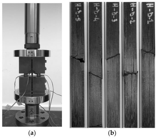 (a) Text fixture adopted for the trade-off campaign; (b) Example of coupons of ribs after the compression test.