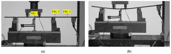 (a) FBGs positions in the 4-point bending test; (b) The rib deflection during the test.
