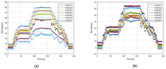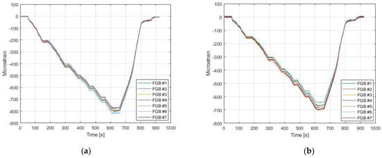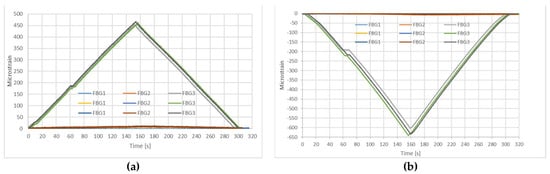 (a) FBGs recording tensile or zero strain; (b) FBGs recording compressive or zero strain.