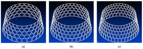 Figure 11. Best candidate configurations with five hoop sections: (a) 24 helical ribs; (b) 30 helical ribs; (c) 36 helical ribs. - Construction and verification of corresponding and simplified FE models (Figure 12);