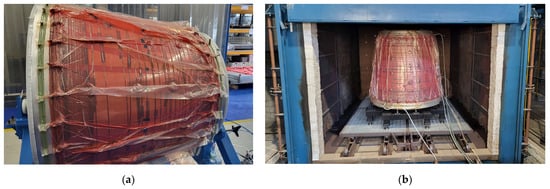 (a) A phase of the vacuum bag assembly; (b) Infusion and cure in the oven.