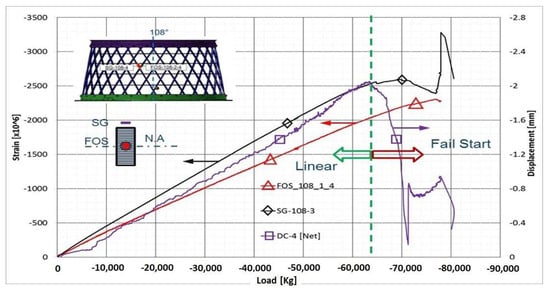 A summary of the failure test including a linear and non-linear structural behavior before the collapse.