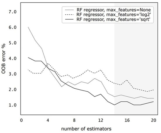 Figure 5 depicts the RF model performance in terms of an OOB error percentage (%) for different ‘max_features’ settings.