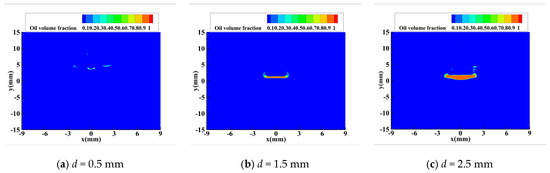 Volume fraction of oil at the central plane under different nozzle diameters.