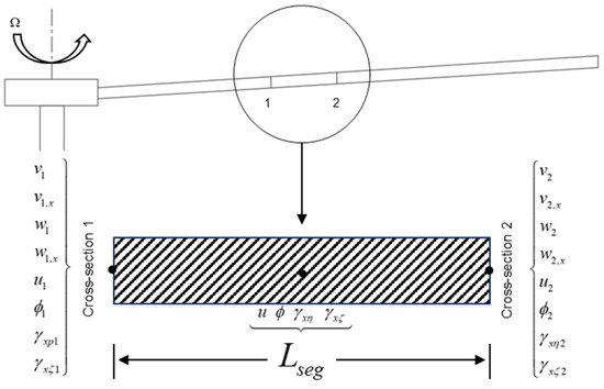 This model has high-order degrees of freedom and allows for free deformation at intermediate positions, making it suitable for CSD calculation of rotor blade deformation,, and for free deformation in the middle position, which can avoid the lack of shear degree and improve the accuracy of solving elastic coupling problems caused by shear deformation and the elastic anisotropy of the blade [8,34]. Therefore, compared to the Euler Bernoulli beam, it has a better ability to simulate the deformation of composite blades such as helicopters and tilt rotors [35].