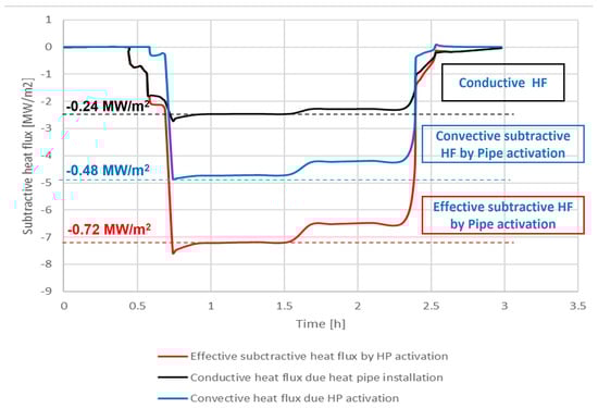 - Subtractive heat flux applied at leading-edge internal additional part/heat pipe interface;