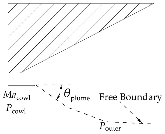 where the subscript cowl refers to the freestream conditions under the cowl and outside the plume.