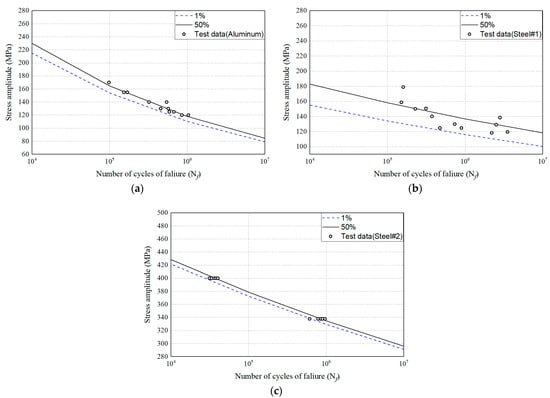 Furthermore, the algebraic equation for the P-S-N curve corresponding to a failure probability of 1% is calculated through Equation (3).