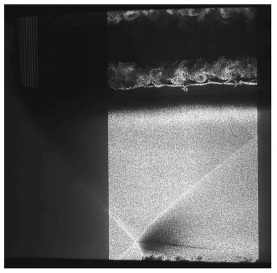 For the Mie scattering visualization, the flow is seeded by nucleating any acetone vapors that occurred by lowering the static temperature of the flow until the acetone condenses, forming acetone nano/micro-droplets. Since the intensity of Mie scattering is much greater than the intensity of acetone PLIF, laser sheet forming for Mie scattering omits the second stage of the frequency doubling and uses an f = −50 mm cylindrical lens instead of an f = −100 mm lens to form a 50 mm × 532 nm sheet rather than the 25 mm × 266 nm sheet illustrated in Figure 3. In this work, the Mie scattering technique is considered to be rather qualitative, allowing the visualization of fine structures in the flow that are difficult to recognize by other methods.