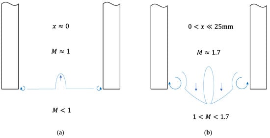 Hypothesized formation pattern of the observed pin tip structures (not to scale). (a) near the sonic region; (b) just downstream of the sonic region.