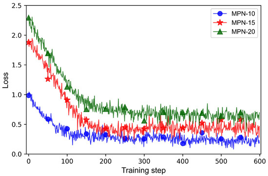 First, given batches of training scenarios, some variables are defined to describe a batch of training scenarios: N denotes the batch size; denotes the task set in the nth scenario; denotes the output scheduling solution for the nth scenario; denotes the optimization objective value of , which is also the reward of this scheduling solution. Furthermore, is the number of training epochs, is the parameter of the MPN, and b is the baseline, the value of which is a constant.