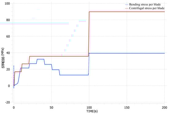 The primary stresses on the blades, including bending and centrifugal stresses, were calculated using the methodology outlined in a previous section. Figure 6 provides an example result from the transient analysis of the LUMEN FTP, utilising the Turbine Blade Fatigue module, with the highest loading conditions observed between 100 and 200 s.