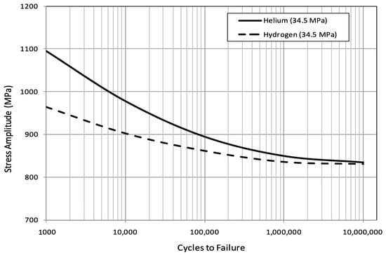Effects of hydrogen pressure (34.5 MPa) at room temperature on the HCF of Inconel 718. (source: [42]).