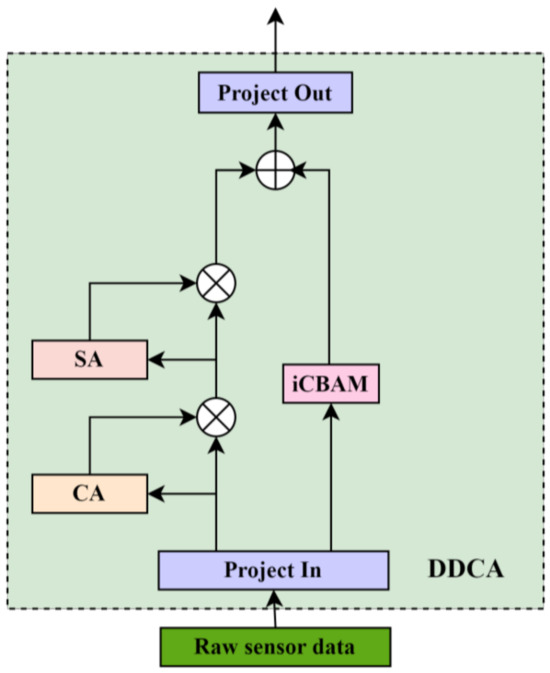 Figure 1. As depicted in the figure, DDCA-TCN consists of a DDCA module and a TCN module. The DDCA module includes three attention mechanisms: channel attention (CA), spatial attention (SA), and an inverted CBAM (iCBAM) module. The TCN module comprises several TCN blocks and a flatten layer. The right side of