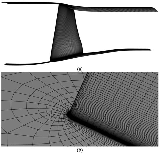 In this study, the NASA Rotor 67 fan rotor blade was selected as the numerical research subject. This blade features a transonic design with a low aspect ratio, and has extensive experimental and simulation data. The NASA Rotor 67 is designed with a rotational speed of 16,043 rpm, a tip speed of 426 m/s, a hub diameter of approximately 0.1 m, a blade height of approximately 0.15 m, a blade chord length of approximately 0.5 m, and an aspect ratio of 1.56.