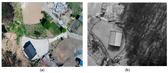 Single image by sensor type for study area A: (a) RGB and (b) TIR.