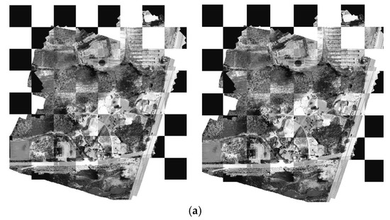 The rapid development of unmanned aerial vehicle (UAV) technology has enabled the generation of high-resolution orthophotos for various applications, including geomatics and remote sensing [1,2]. UAV-based photogrammetry offers significant advantages over traditional methods, particularly in areas that are difficult to access or that cover large geographical regions [3,4]. Conventional aerial or satellite-based image acquisition methods, while useful for wide-area mapping, have limitations in terms of cost, time, and resolution [5,6,7]. In contrast, UAVs can be deployed quickly and repeatedly to capture high-quality images, making them an ideal tool for generating orthophotos in diverse environmental conditions [8].