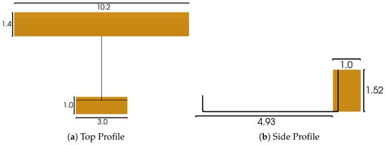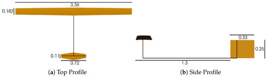 The smallest configuration analyzed is the Zipline delivery drone, which has been utilized for delivering medical supplies in regions of Africa with limited transit infrastructure [42]. Due to the scarcity of detailed design parameters for the Zipline, the planform was reconstructed based on photographs and publicly available information, including estimates of airspeed and total mass. This delivery drone features a v-tail ruddervator, adapted as depicted in Figure 9. The v-tail has been projected onto the appropriate planes to create a conventional control surface layout. Table 4 summarizes all additional assumptions in creating the SHARPy model.