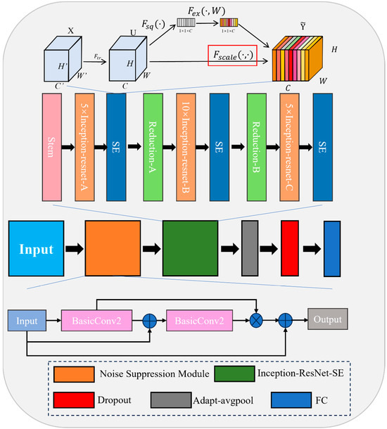 - Proposing an improved Inception-ResNet-v2 network integrated with SE and noise suppression modules, effectively enhancing the network’s feature representation capability and robustness;