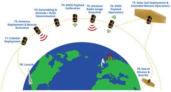The attitude verification functionality of these external cameras serves to provide infrequent manual visual confirmation of the ADCS’s ability to orient the spacecraft to the correct attitude. This process will use major identifiable objects and features in the captured images to calculate the visually observed attitude via post-processing on ground and confirm if this is consistent with the attitude reported by on-board sensors. As the ADCS will be aiming to maintain a fixed nadir–zenith orientation for the Z-axis for purposes of the GNSS payload, the images produced by the cameras on the ±Z faces will allow the team to confirm this orientation has been reached and is maintained throughout the operational lifetime of the GNSS payload. If the images produced indicate the spacecraft is oriented differently to the numerical sensor data, adjustments to the pointing algorithm can be uplinked to mitigate against any sensor errors that are identified. Such an attitude verification process is included as a redundant safety feature and is not expected to be used except in cases of suspected errors in sensor data, where anomalous or conflicting values are observed.