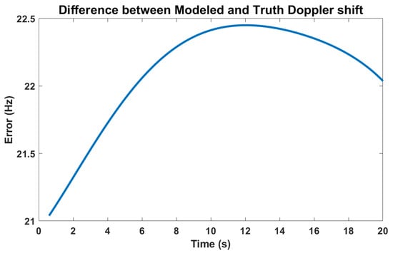 Figure 9. The error between the true Doppler shift and the modelled Doppler shift is shown in