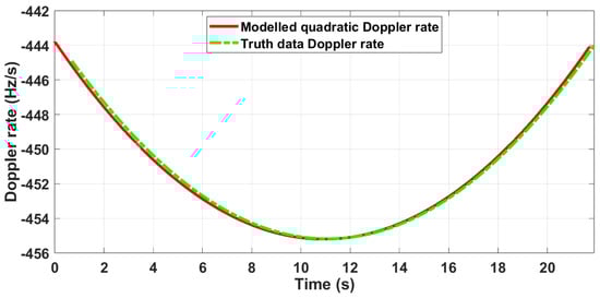 Figure 11, where it has been validated against the truth data once more. Again, the result was very accurate, which is 0.13 Hz/s. The error between the modelled Doppler rate and the true Doppler rate was plotted in
