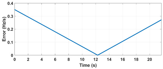 Figure 12. The error remained very small over the entire simulation, reaching a maximum of approximately 0.35 Hz/s at the beginning of the simulation.