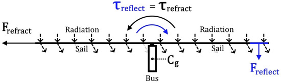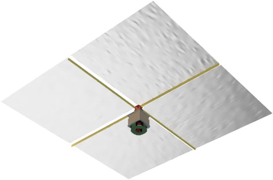 Figure 14; this is necessary because SRP that acts parallel to the sail also acts perpendicular to any radial vector drawn from the satellite centre of mass. The effect of this reflective section is that the net torque generated by the accelerating sail is zero in a Sun-pointing attitude, meaning that there is less disturbance torque that the self-stabilising sail sections must counteract.